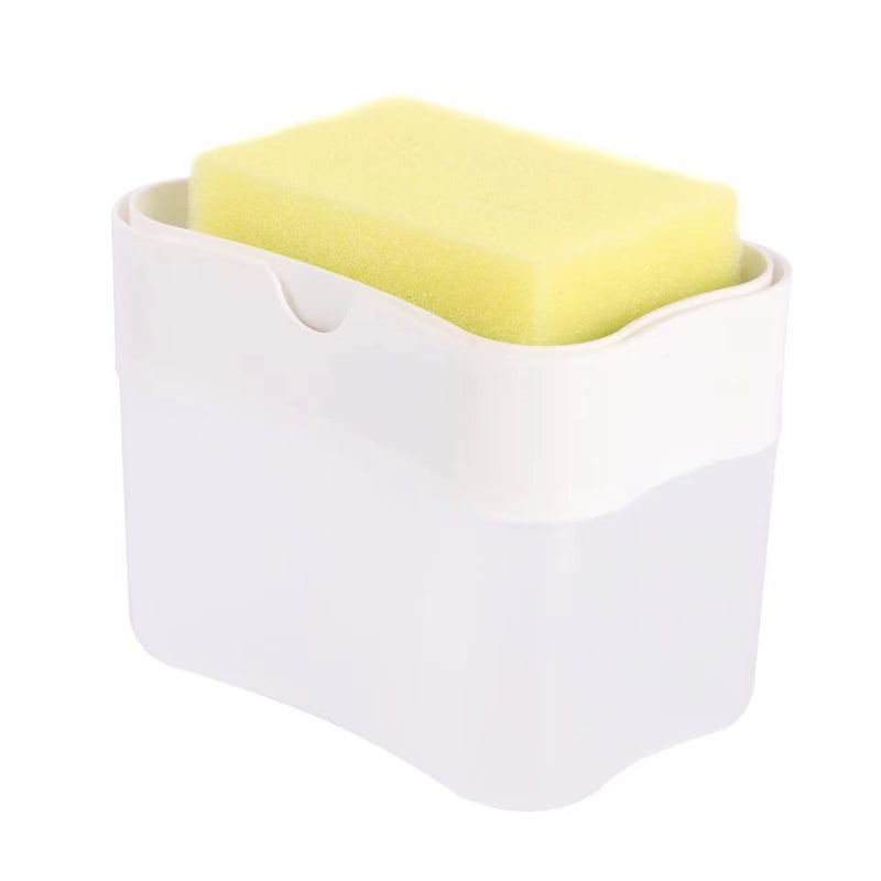 🧼✨ 2-in-1 Soap Dispenser & Sponge Holder – One-Hand Press, No Mess Kitchen Sink Organizer